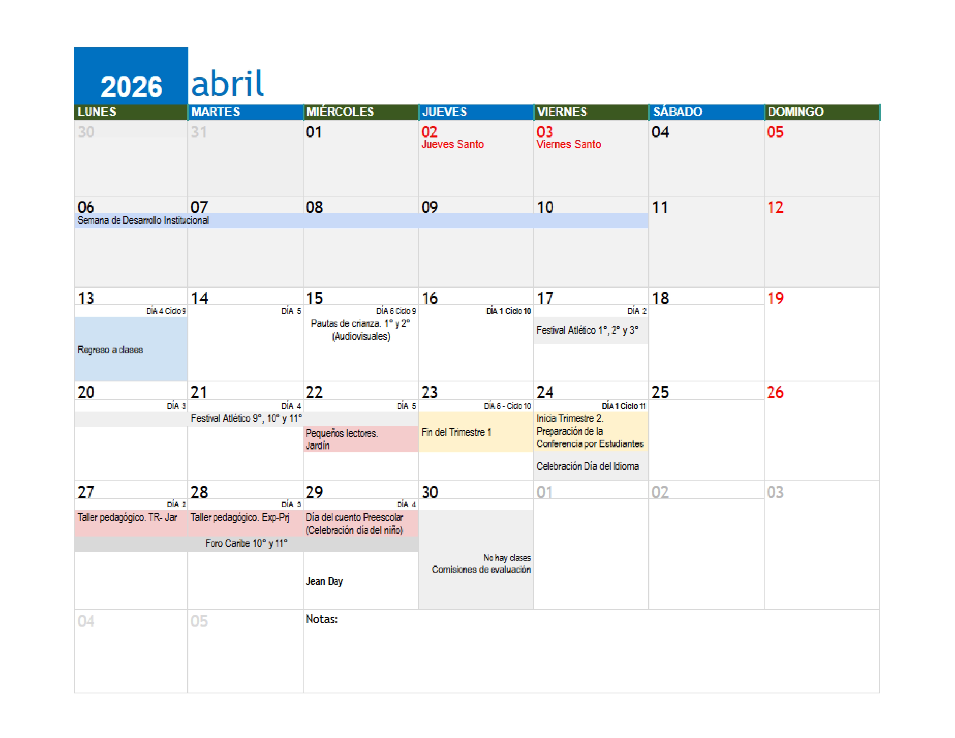 CALENDARIO 2026